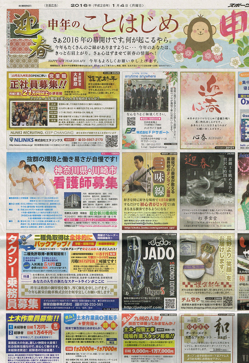 今回は、スポニチ1月4日号(九州全県、山口県、島根県)。