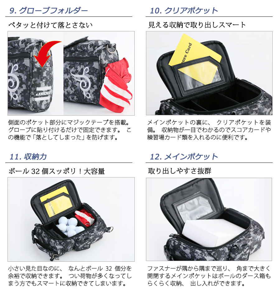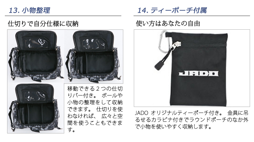 ニュース 14の機能を持ち備えたラウンドポーチ 2017年9月13日発売アイテム 2017.09.06 by vigors5500 0 ◆アメリカンタトゥー柄でゴルフには邪道【JADO】なデザイン。 ◆小さなポーチに14の便利な機能を搭載。 【商品詳細】 ・名称:Round Pouch ・品番:JGRP0202 ・Jan code:4571474041517 ・サイズ:横26.5cm × 縦17.5cm × 幅8.5cm(外寸) ・カラー:デジカモブラック(DGCMBK) ・素材:Polyester(ポリエステル) ・生産国:made in china ・定価:9,000円+税