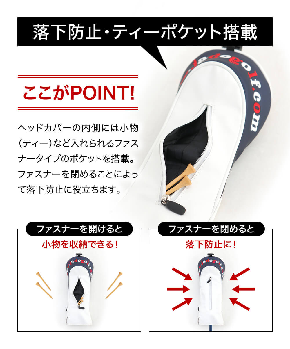 ◆落下防止・ティーポケットを搭載(ファスナータイプ)
